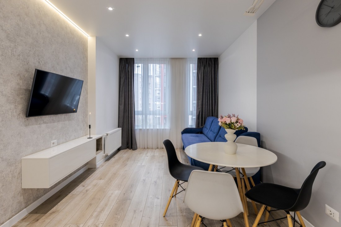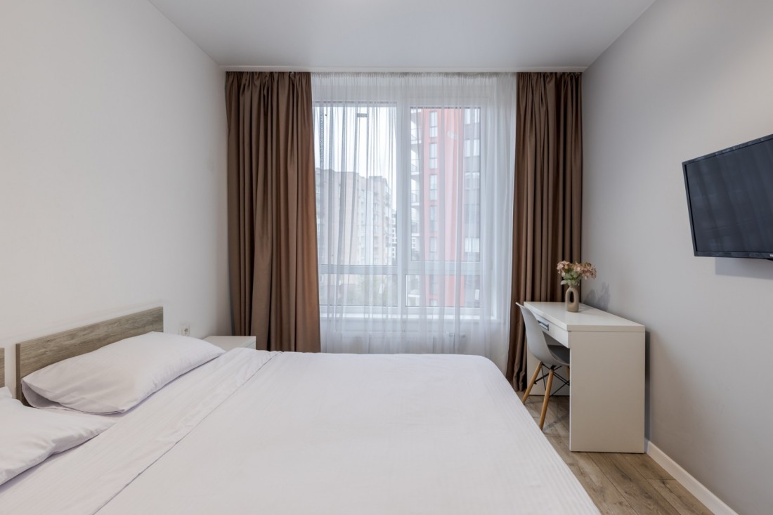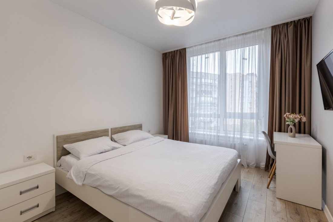 Do wynajęcia 2-pokojowe mieszkanie (sypialnia + salon-studio) przy ul. Szewczenki 60, w nowym budynku, w kompleksie mieszkalnym „Siemiecwit”. Na miejscu znajduje się wszystko, czego potrzeba do życia – pościel, ręczniki, naczynia, suszarka do włosów, Wi-Fi.